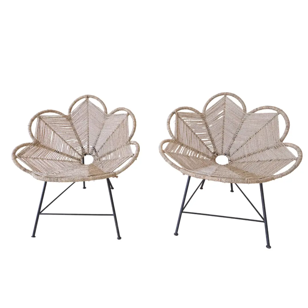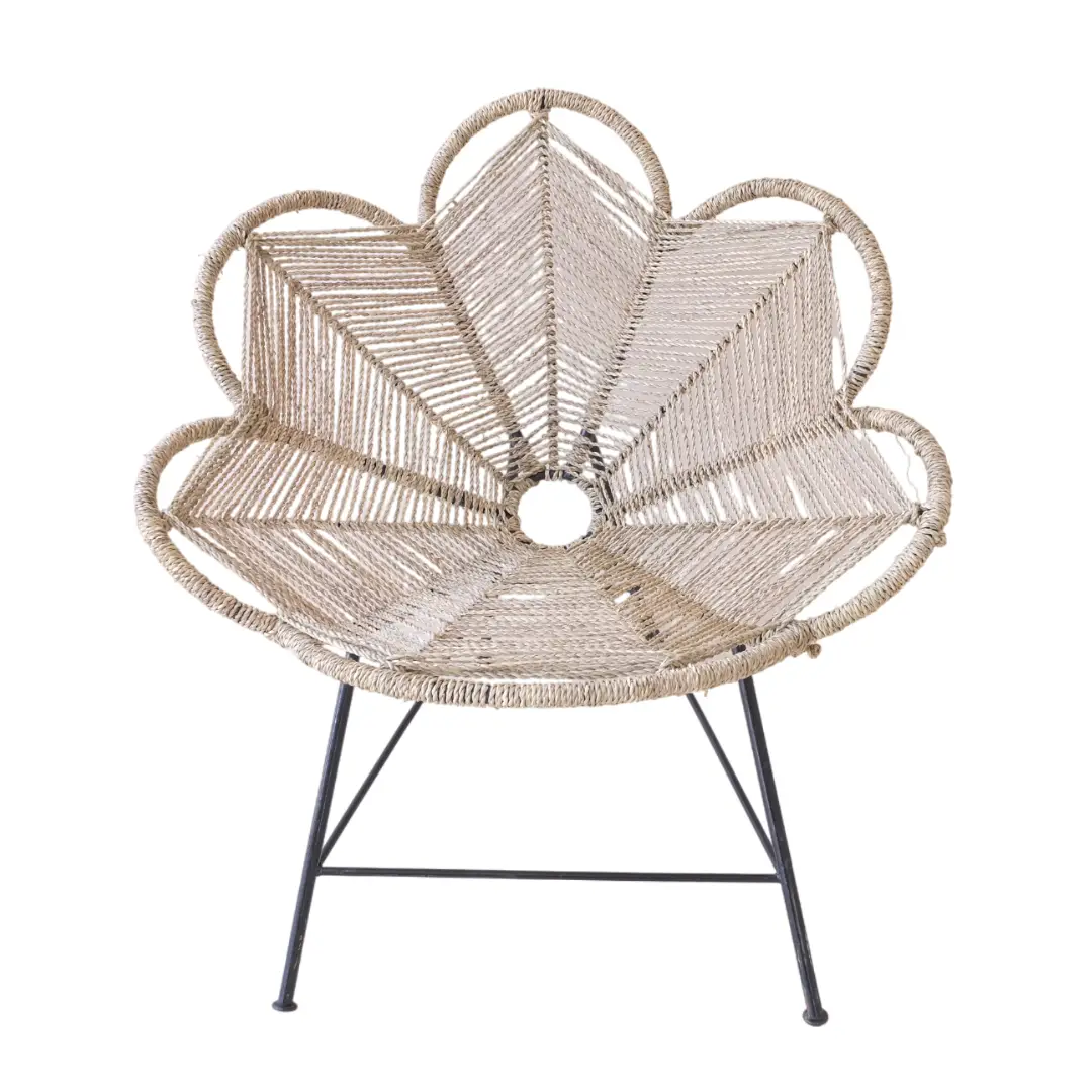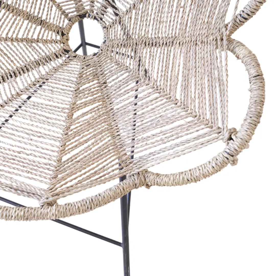 Deze prachtige Woven Palm Leaves Chair is een prachtig stukje vakmanschap dat natuurlijke elegantie combineert met modern design, handgemaakt door bekwame ambachtslieden en geïnspireerd door de delicate schoonheid van bloemblaadjes, waardoor elke stoel echt uniek is.